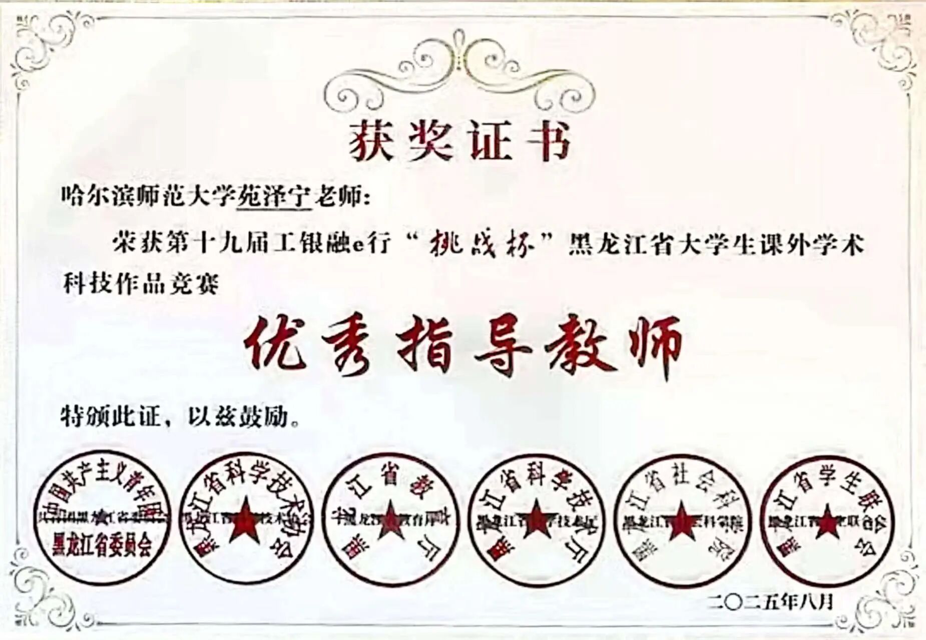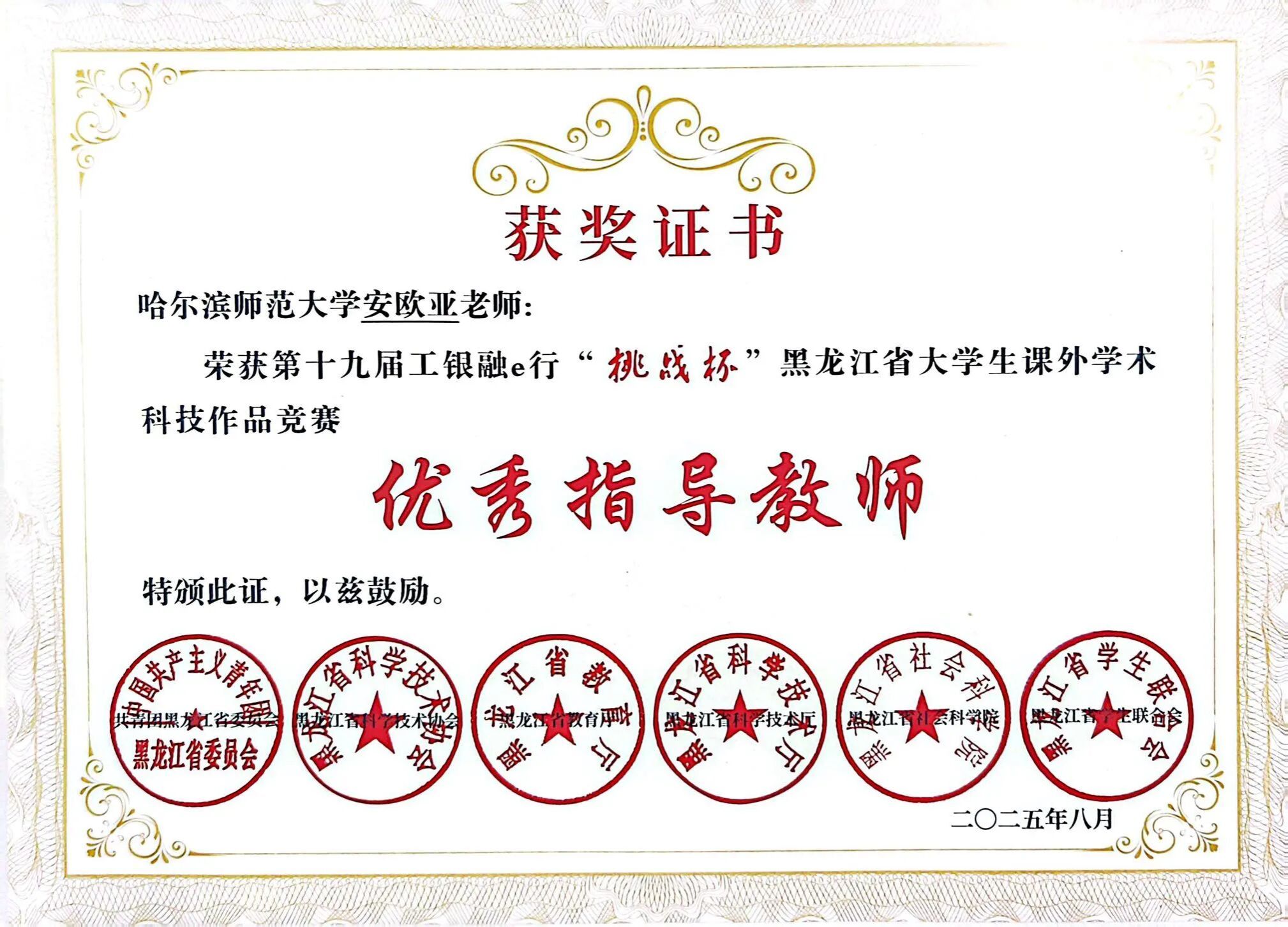 学院3名教师苑泽宁、安欧亚、袁媛荣获省级“优秀指导教师”称号。