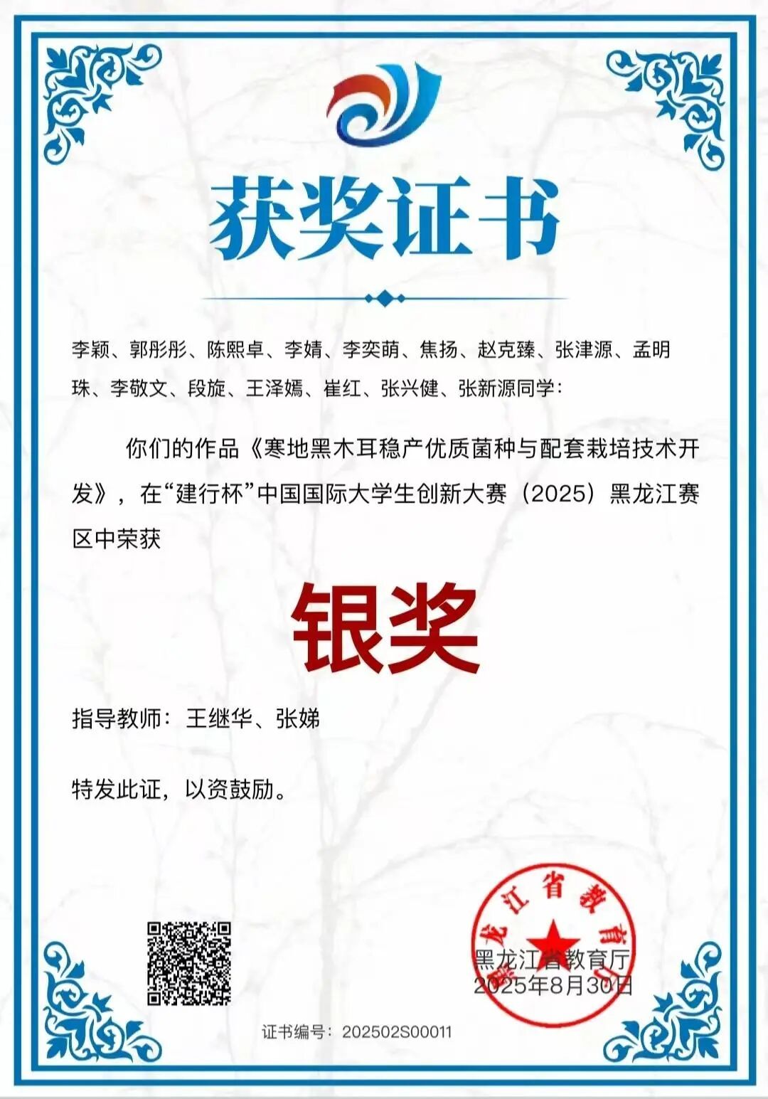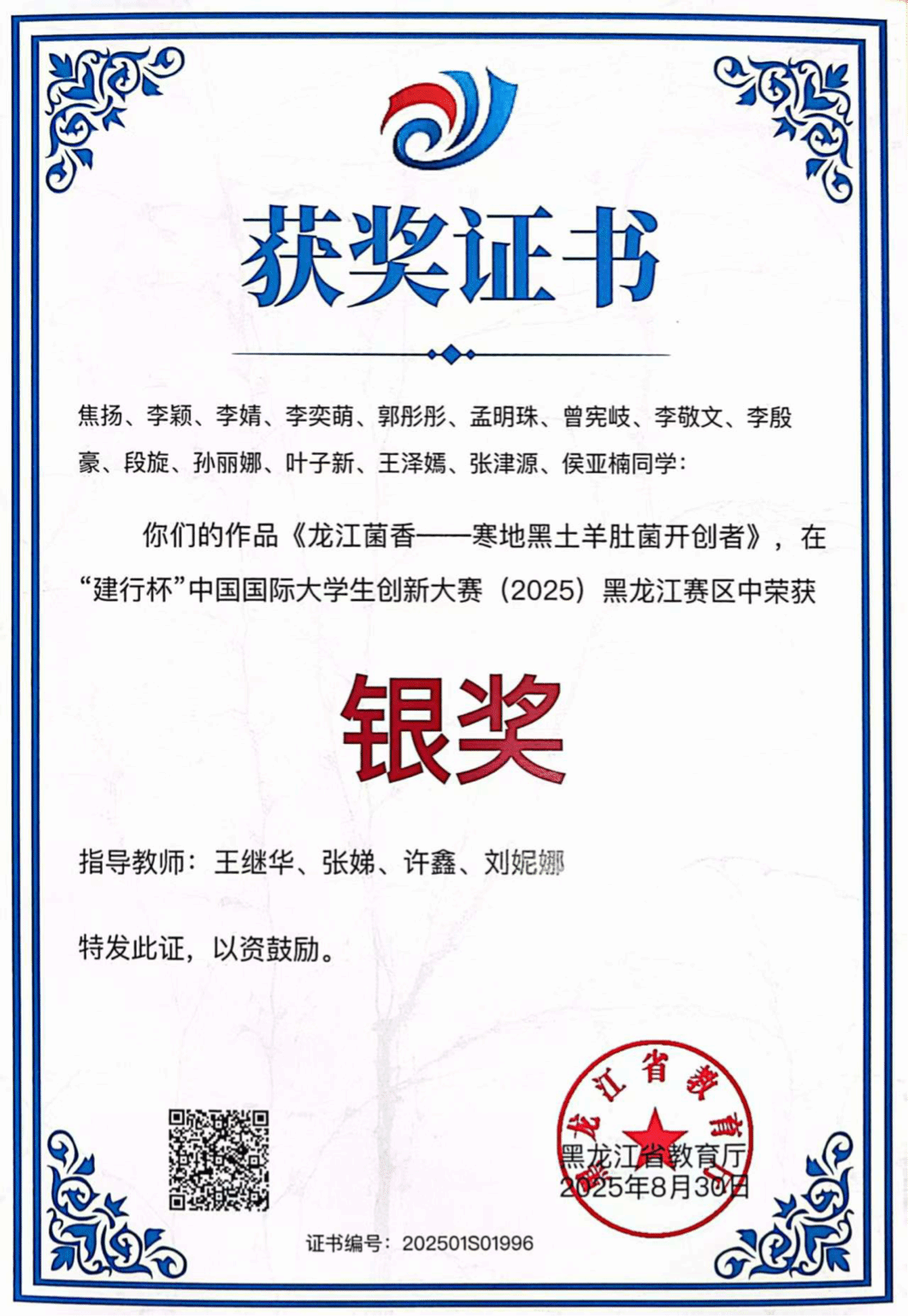 省级银奖名单