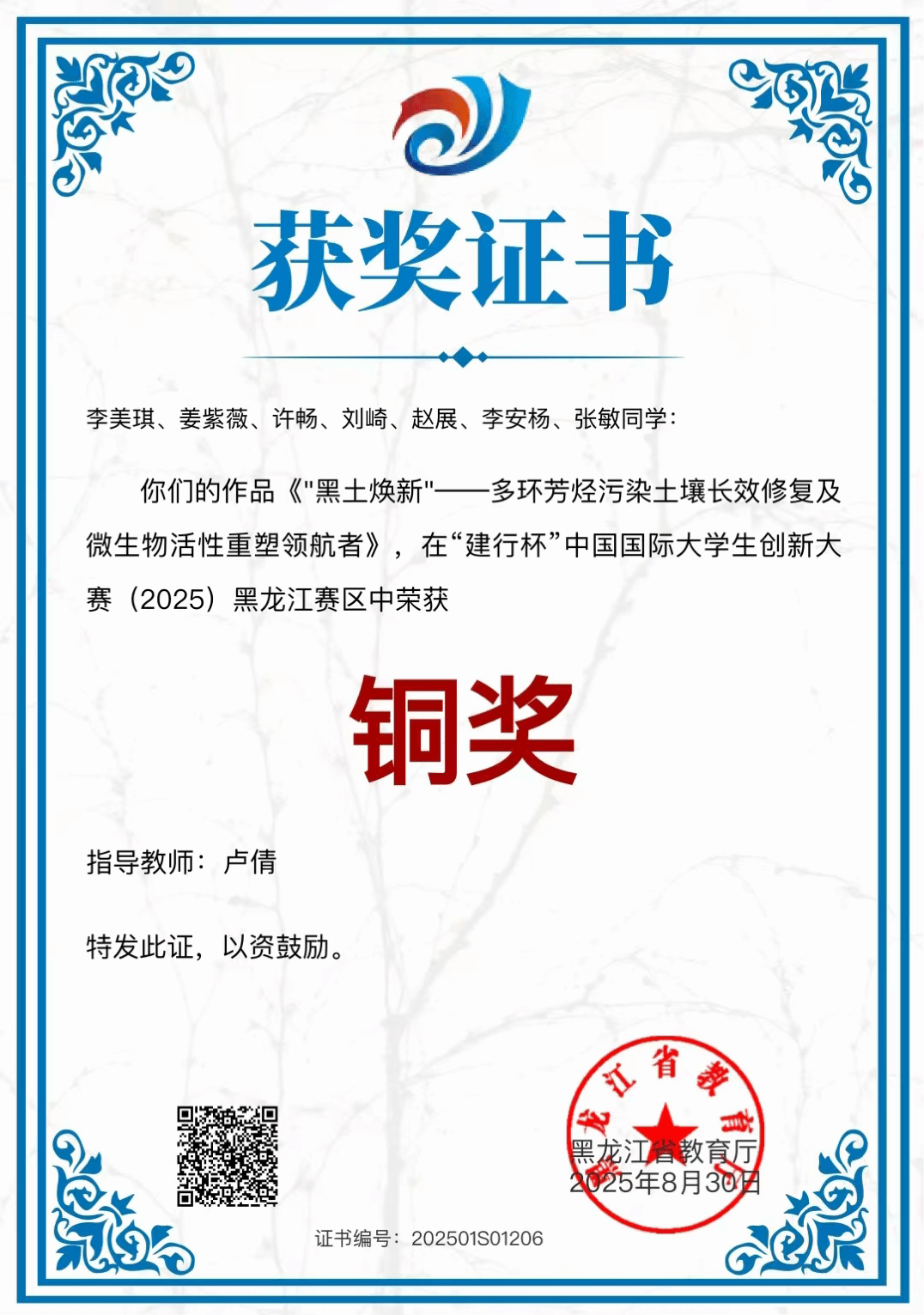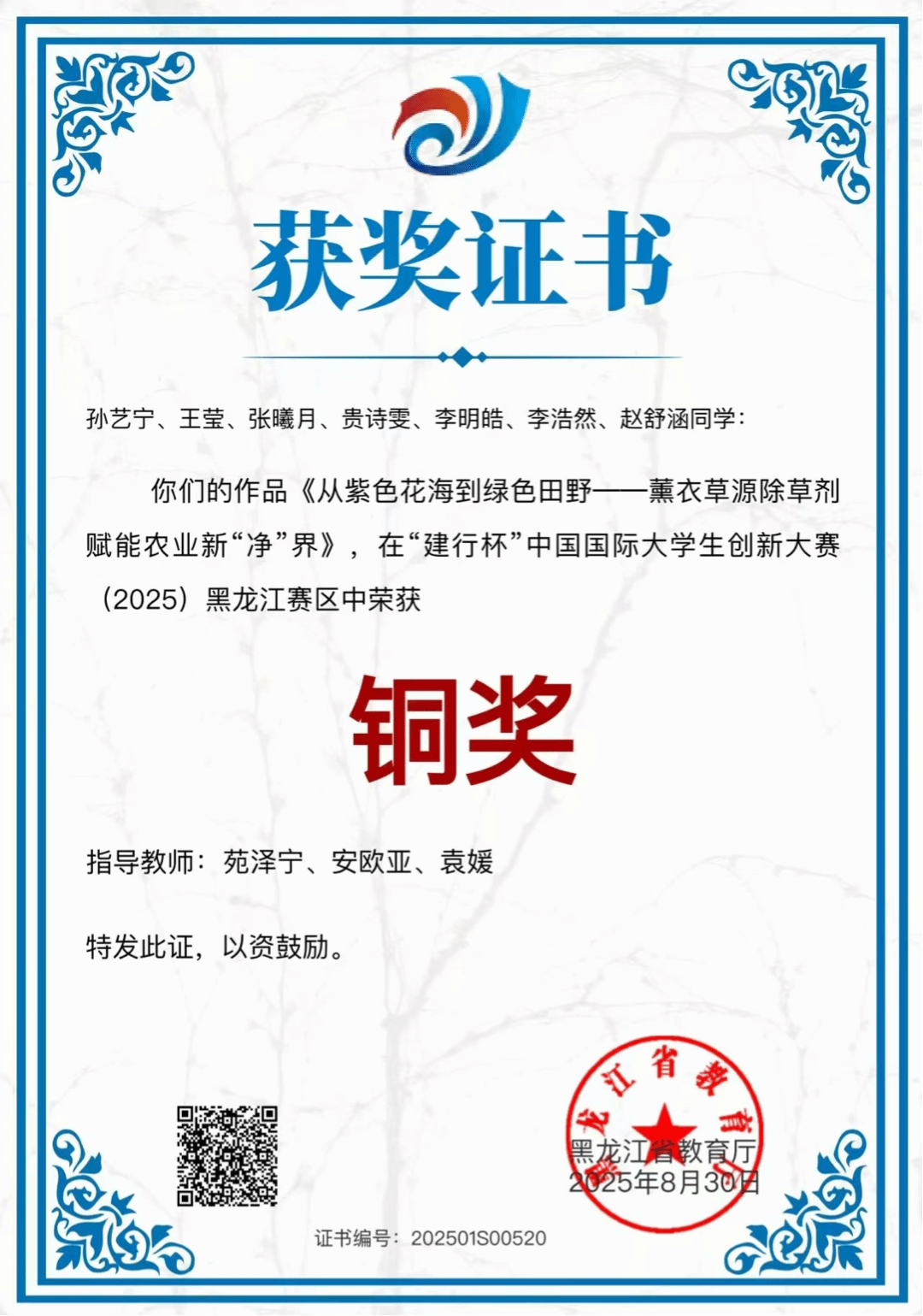 省级铜奖名单