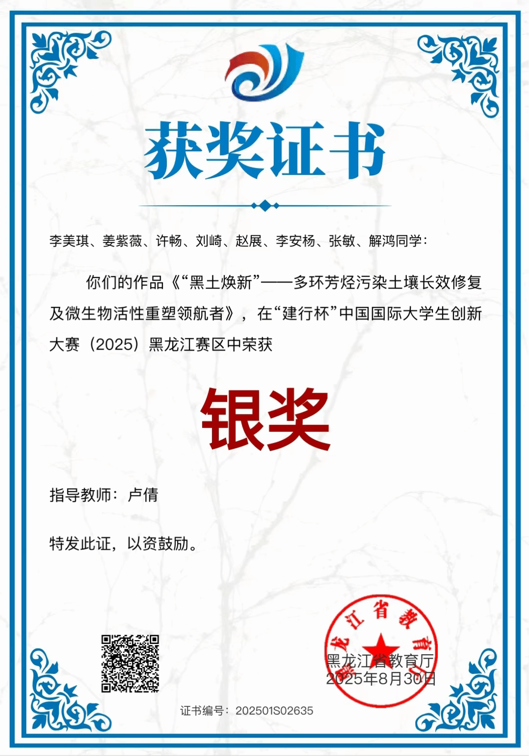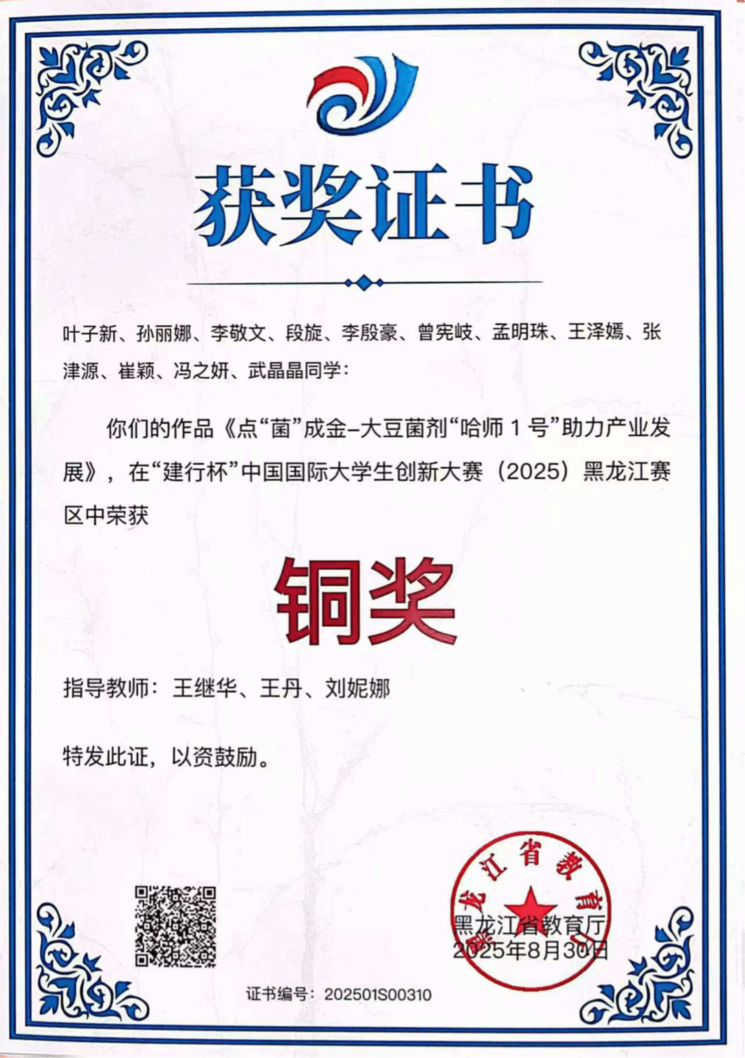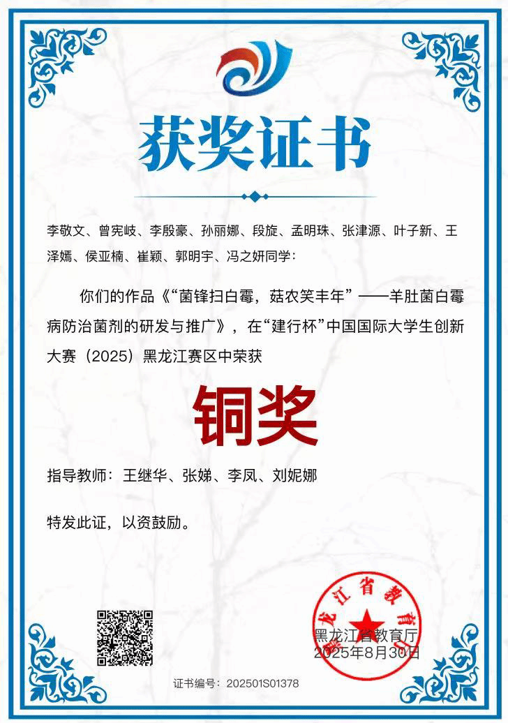 在中国国际大学生创新大赛(黑龙江赛区)赛事中,我院学子荣获省级银奖3项、省级铜奖6项!