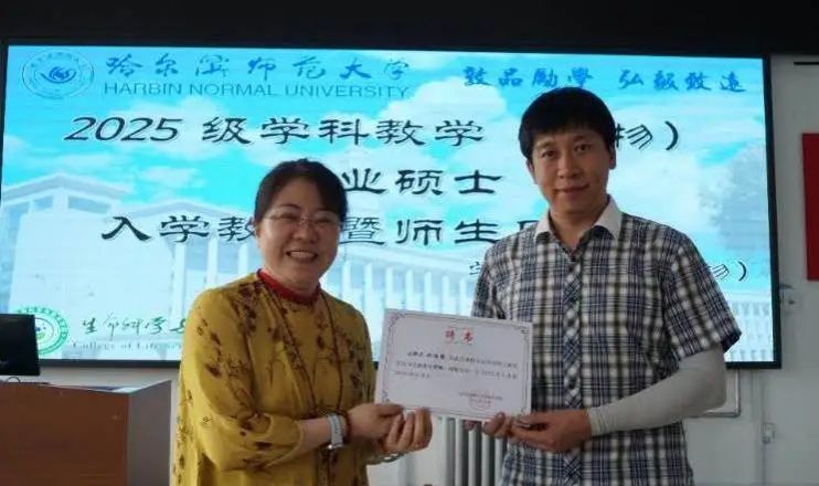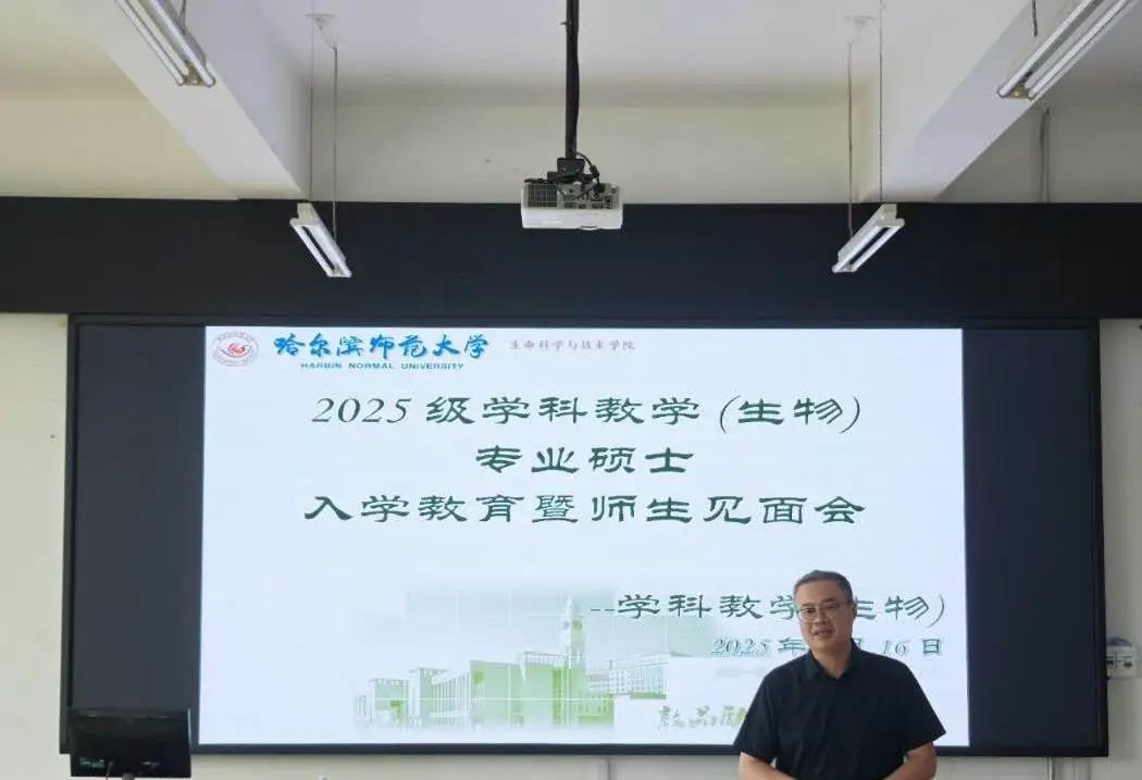 首先,杨冬鹤老师对新生进行入学教育,并对2025级新生表示热烈欢迎。杨老师在讲话中指出,学院工作作风严谨、优良,学科教学(生物)专业师资队伍力量雄厚、导师们认真负责,希望新同学们努力学习专业知识,不断提升自己的教学技能。