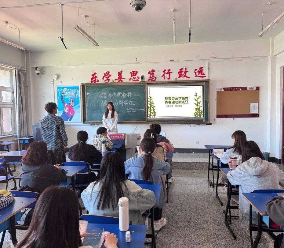 活动中,各团支部组织学生观看音诗画作品《黑土地上的师大英华》,感悟终身教授、优秀校友、兴边富民支教团及亚冬会志愿者的奋斗故事,领略哈师大人扎根龙江的精神风貌。随后,团支部学生分享自身感悟,鼓励团员青年表达扎根龙江、建设家乡的决心,让龙江精神在青年学子心中生根发芽。
