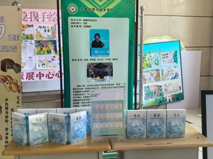 由刘妍教授带领的《藻漾护肤品研发》依托学院实验室,与中科院青岛所合作。采用环境诱导技术从细小裸藻提取高纯度甘油葡糖苷无需破壁或化学添加,旨在以绿色工艺达成双碳目标。为大学生创新创业发展提供新动能。