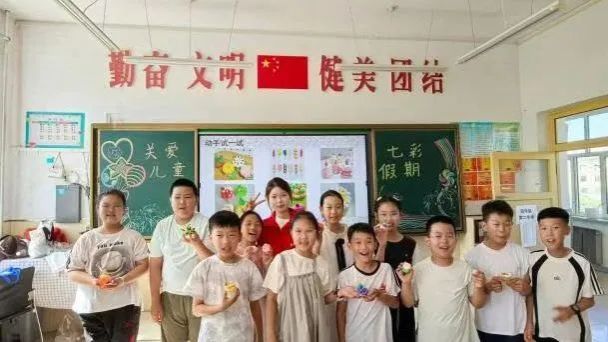 志愿者们以“七一”建党日为契机,用思政教育串联起祖国旗帜的故事,鲜活的历史片段随着草原的风浸润童心;手工课上,孩子们将五颗黄星郑重粘在红布上,稚嫩的小国旗扬起时,红色基因已如黑土下的根系般悄悄延展;数学题的难题被画图拆解,混淆的拼音在逐字拼读中清晰,困惑的眼神亮起时,知识的嫩芽正破土而出;志愿者们用发霉的面包与助消化的益生菌作比,并带来羊肚菌的故事,科学探索的种子便在好奇的目光中扎根;在互动游戏中学会了情绪的表达,安全知识抢答声里,交通安全、防溺水的要点深植心间。这些守护成长的瞬间,恰似黑土地默默涵养着每一株幼苗。