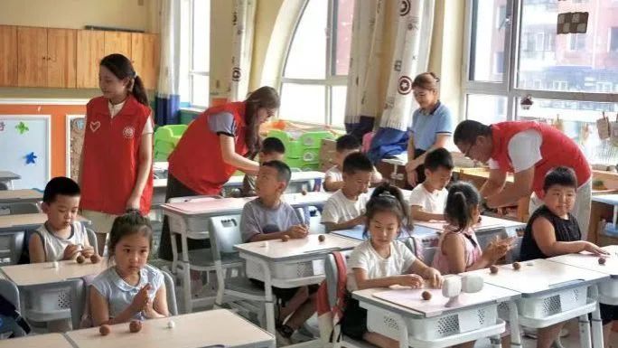 为让孩子们了解祖国的疆域辽阔,感受“一寸山河一寸情”的家国情怀,志愿者带领孩子们共同拼接中国地图;活动室里,彩泥在手中变成胖乎乎的酸菜包、红亮亮的冻梨,孩子们边捏边听志愿者讲“黑土地上的年味故事”;红纸在剪刀下翻飞出“五谷丰登”的窗花,孩子们特意在边角剪上松塔图案,说要“把大兴安岭的味道贴在窗上”;操场上传来“丢手绢”的欢笑声,打沙包的身影穿梭在阳光下,志愿者与孩子们的汗珠滴落在草皮上,像极了黑土地上凝结的晨露。
