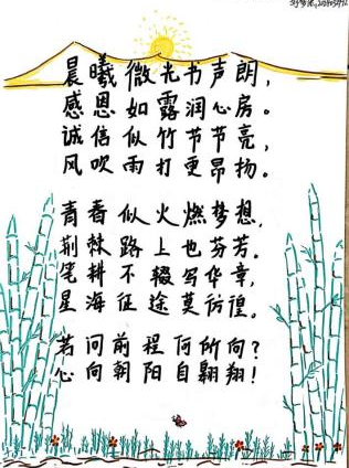 5月13日至5月16日,学院精心策划并举办“感恩、诚信、励志在校园”主题微诗大赛。由学院资助专干教师袁媛担任评委,吸引2022级至2024级众多学子踊跃参赛。参赛者们以凝练的文字、灵动的笔触,在方寸诗行间抒发感恩之情、礼赞诚信之美、书写励志之志。经严格评审,五篇构思精巧、内涵深刻的佳作脱颖而出,获推荐参与校级评选。此次活动以诗歌为载体,既为学生搭建了展现文学才华的平台,有效提升其艺术审美与创作能力,更通过诗意表达深化了诚信感恩教育,让德育理念浸润学生心田。