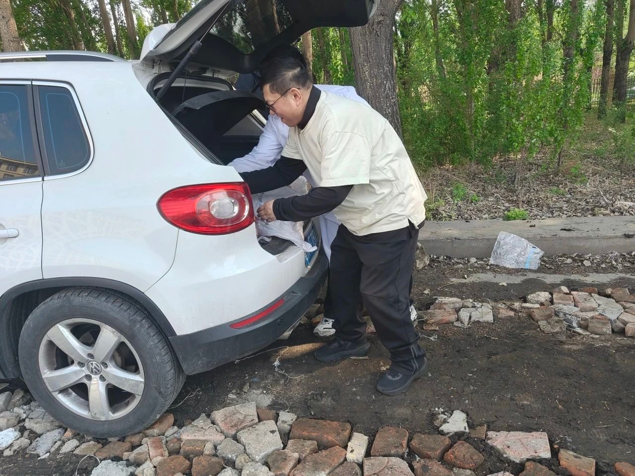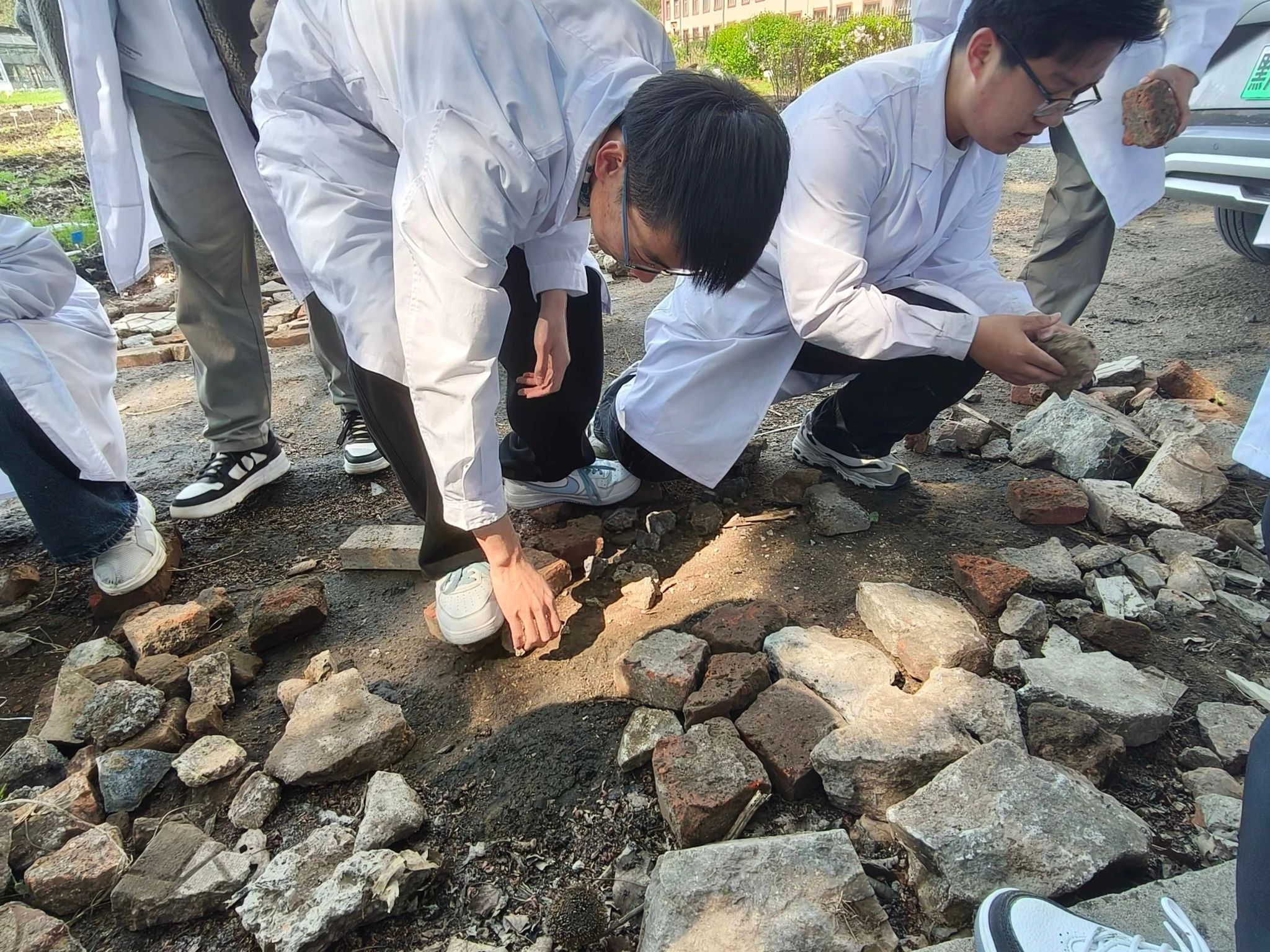 在实践现场,教师利用私家车组成转运车队,学生们一部分负责捡、装,一部分负责卸、铺;整个下午共计运输废弃砖石50余车,学生们累计完成面积近1000平方米实践教学基地的废弃砖石清理,累计装卸砖石700余袋,共铺装生物科教创新园道路近100平方米。