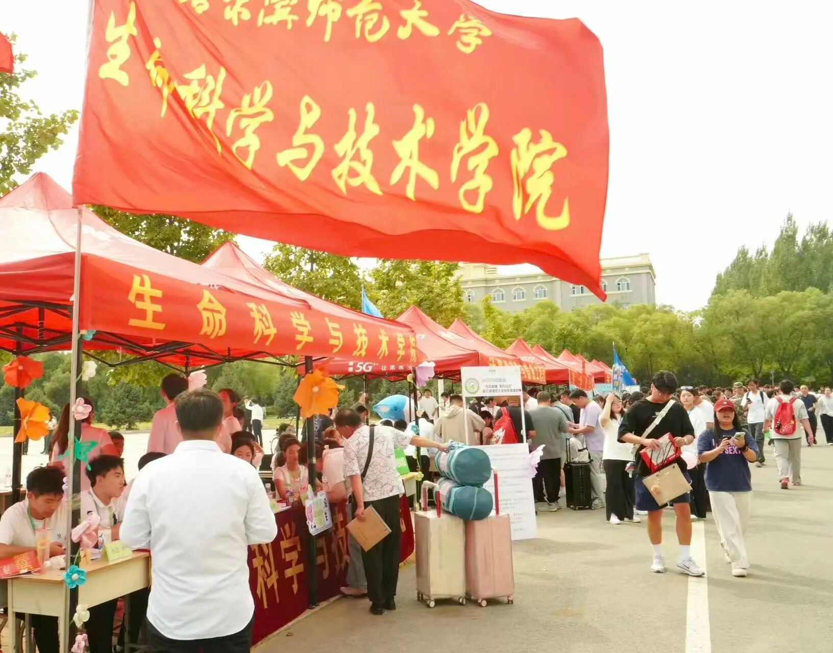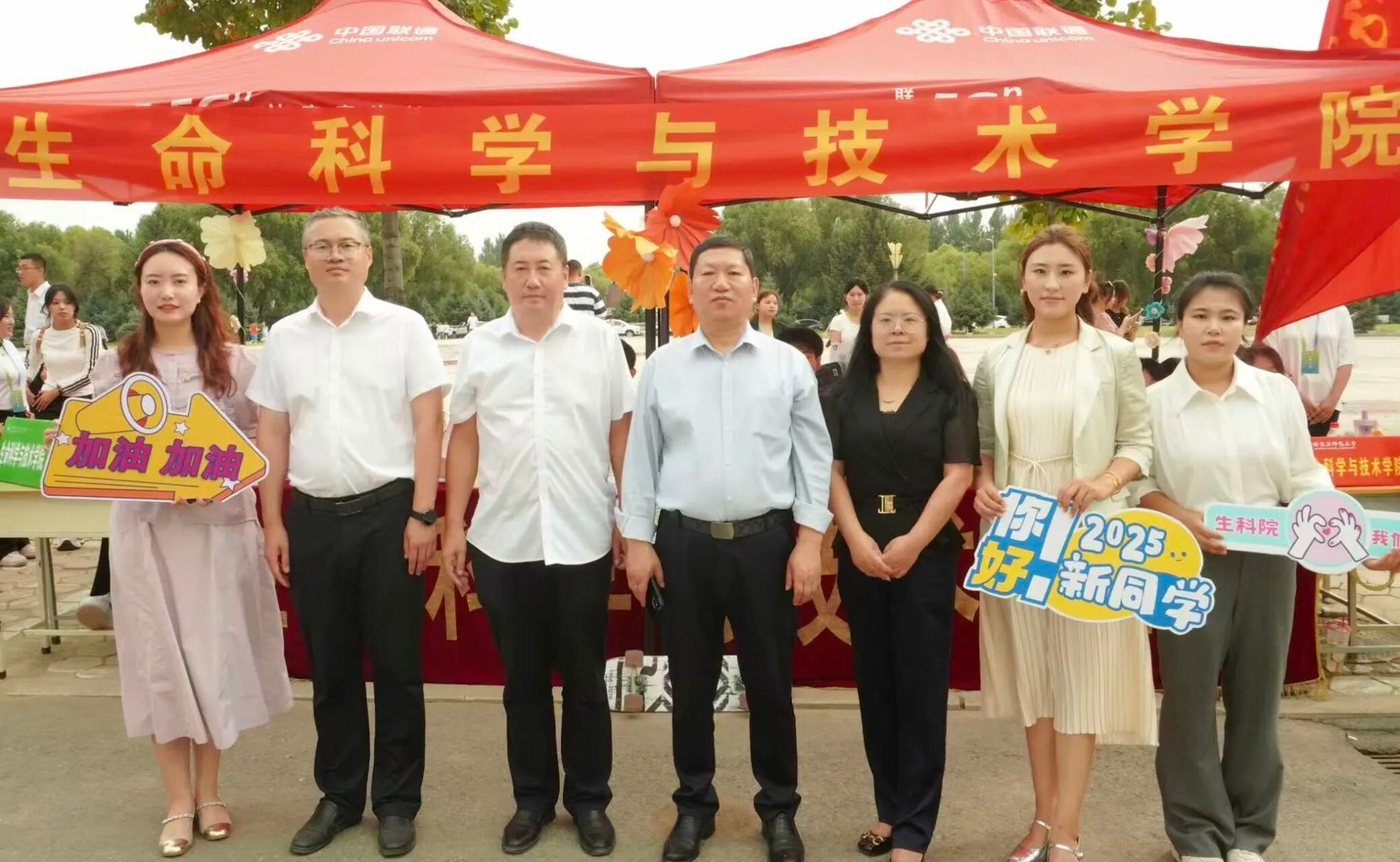 生科院的老师和同学们在迎新现场热烈欢迎新同学加入生科院大家庭并慰问远道而来的新生及家长。2025级新生辅导员李婧雯、林婷婷在现场与新生交流沟通,并表示未来四年时光将与大家携手同行,希望同学们以昂扬姿态迎接挑战,以坚定步伐书写青春,在成长路上乘风破浪、砥砺前行。