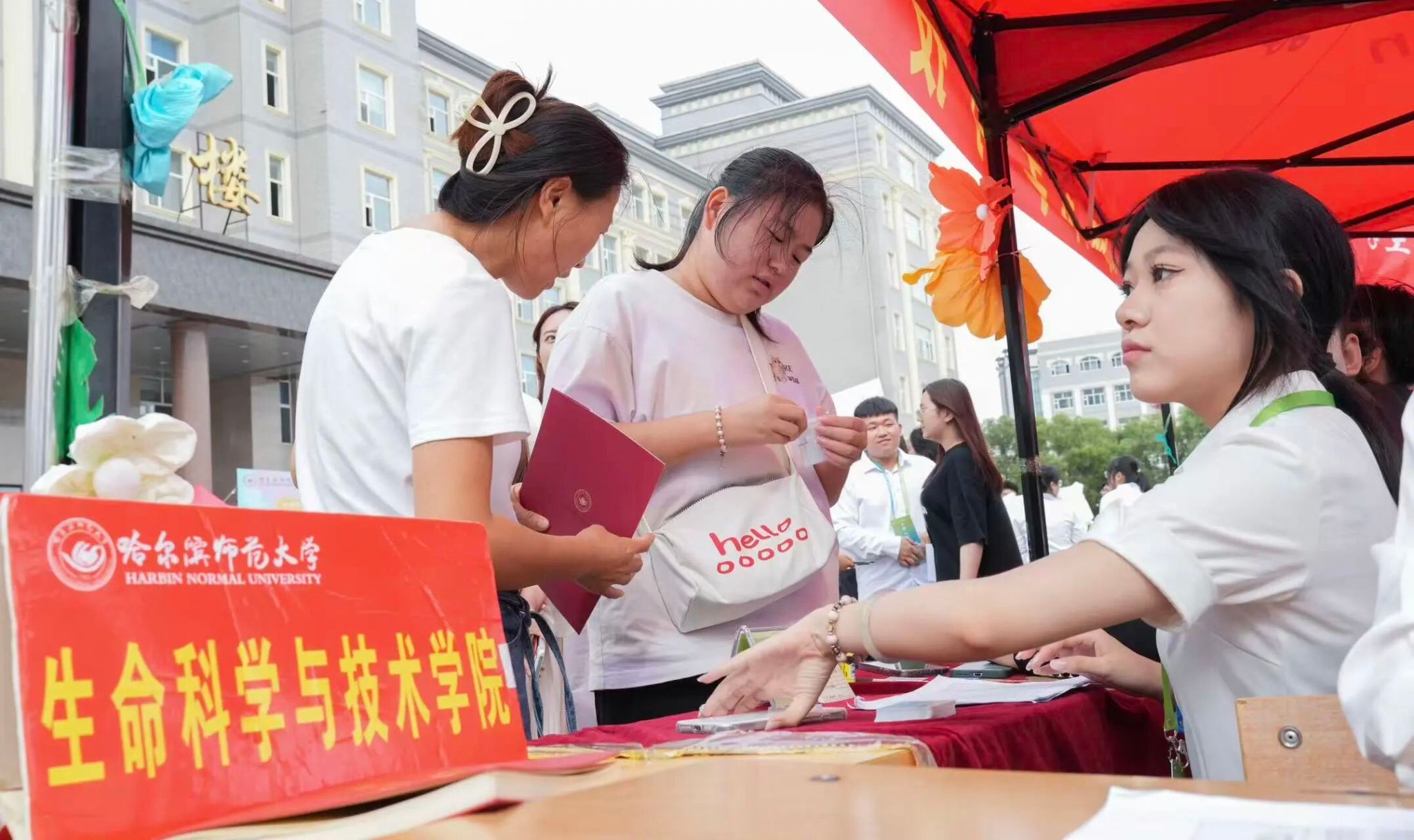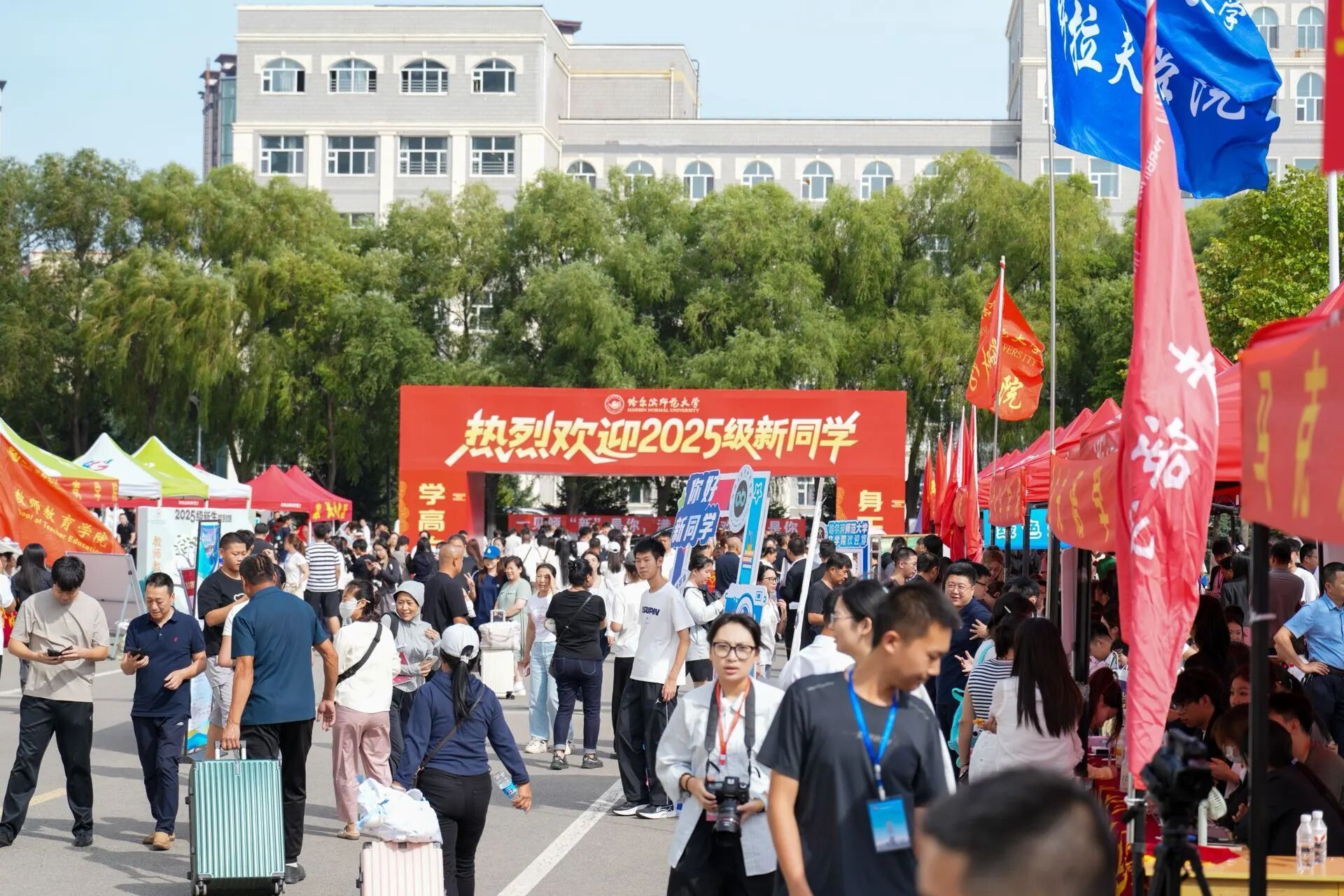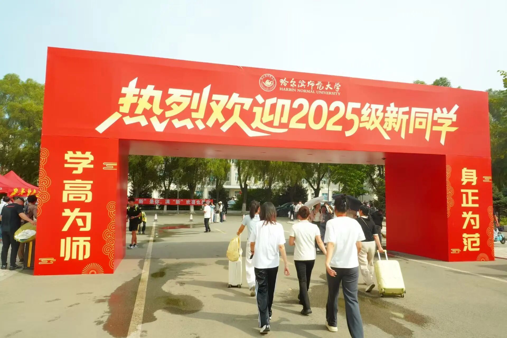 2025级新生带着行囊与憧憬迈入校园,一抹抹热情的“志愿红”早已守候在秋日的晨光中。南门入口、宿舍楼前、社科楼广场,随处可见志愿者们忙碌的身影——他们微笑着迎上前,接过沉甸甸的行李,耐心解答疑问,一路引导新生办理入学手续。报到处,各班班助整齐着装、精神饱满,高效协助身份核验、信息登记与一卡通发放,用行动诠释“哈师大人”的温暖与担当。这一刻,秩序与温情并存,写下了迎新季最动人的开场白。