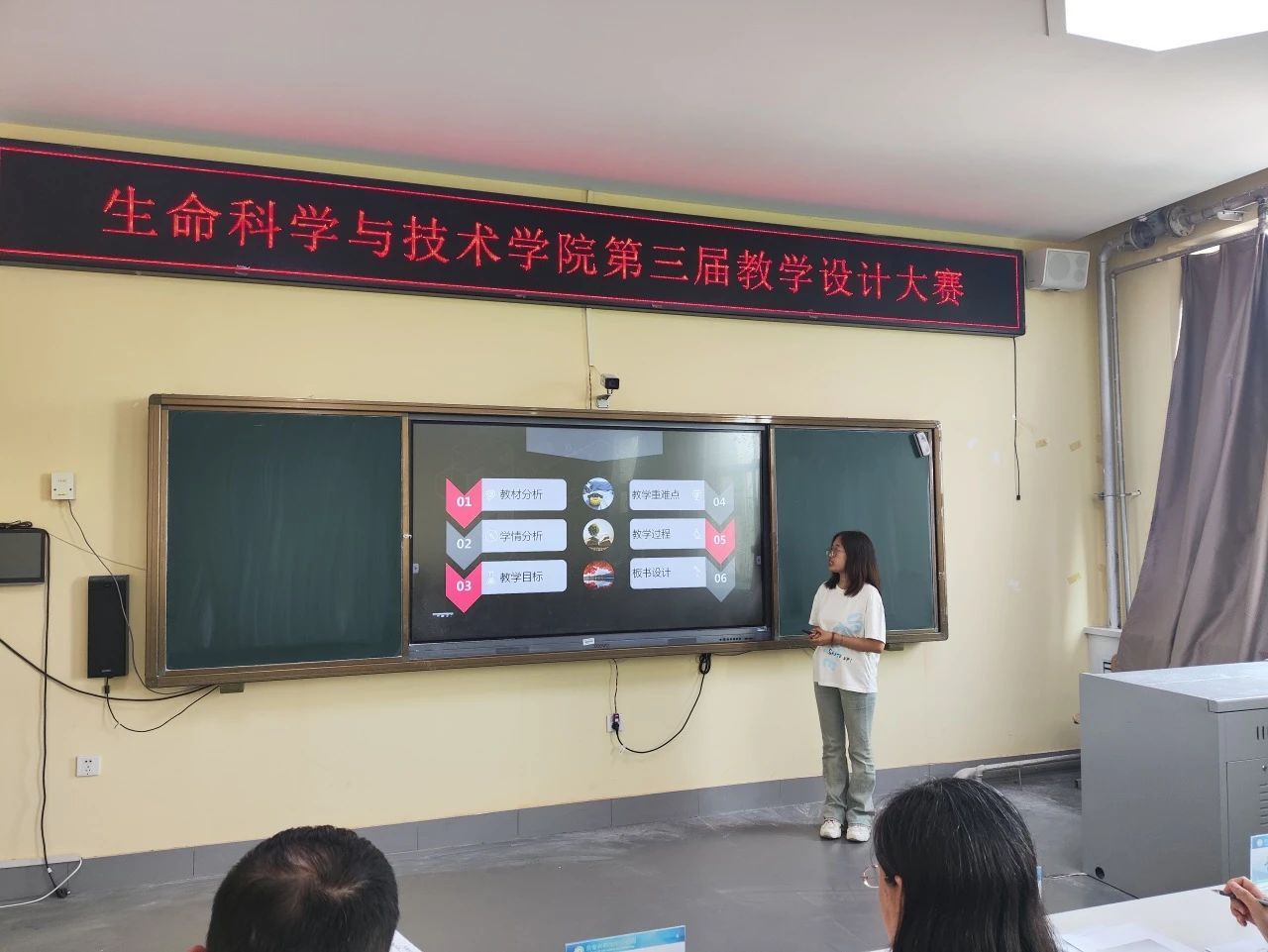 决赛中,选手们全力以赴,用心准备,围绕着生物学科知识选取教材章节进行教学设计,将教学目标、教学重难点、教学方法、教学过程、教学评价在多媒体课件中明确展示,主题明确,逻辑清晰,表达流畅。
