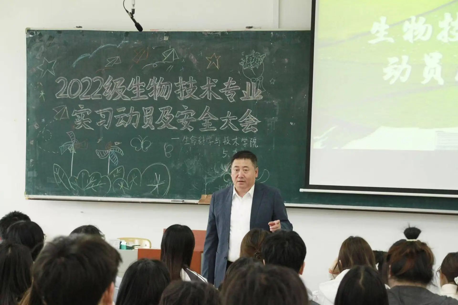 (赵金鑫/文)为帮助2022级生物技术专业学生明确实习方向,增强实践能力,同时强化安全观念,规避实习风险,保障实习工作安全有序推进,5月21日,生命科学与技术学院于理工三号楼422教室召开2025年度生物技术专业实习动员及安全大会。学院党委副书记高阳、实习带队教师张延明、李新玲,辅导员孟繁华出席本次会议。2022级生物技术专业全体学生参加此次会议,会议由张延明主持。