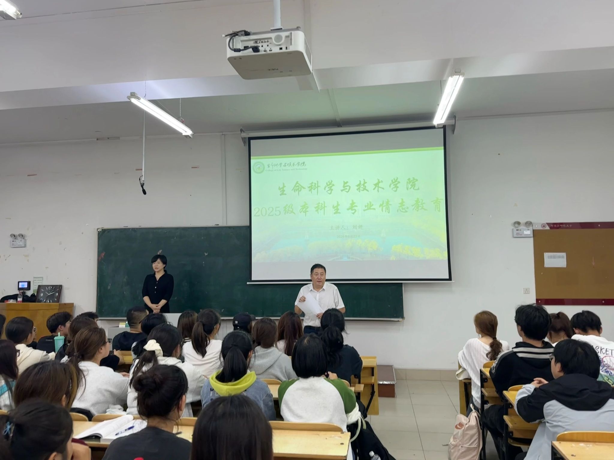为全面落实立德树人根本任务,深入推进“三全育人”综合改革试点工作,结合学校《大学生思想政治教育“112349”工作模式实施方案》和《2025级新生入学教育方案》,切实提升新生专业认同感、深化专业认知、培养专业情志,9月23日,生命科学与技术学院于理工三号楼320室面向2025级全体本科生开展新生情志教育专题讲座。本次讲座由校党委常委、副校长、院长刘妍主讲。