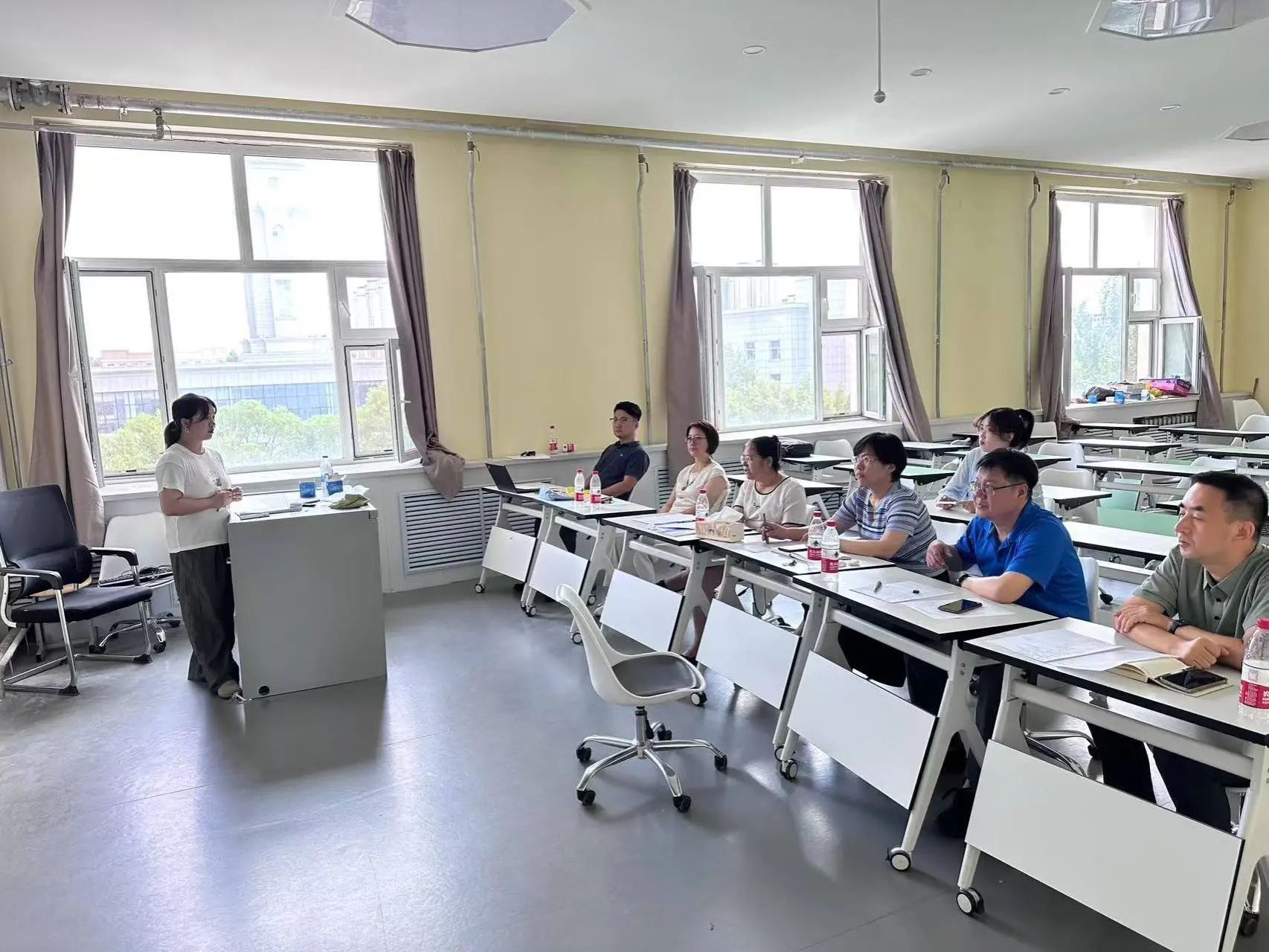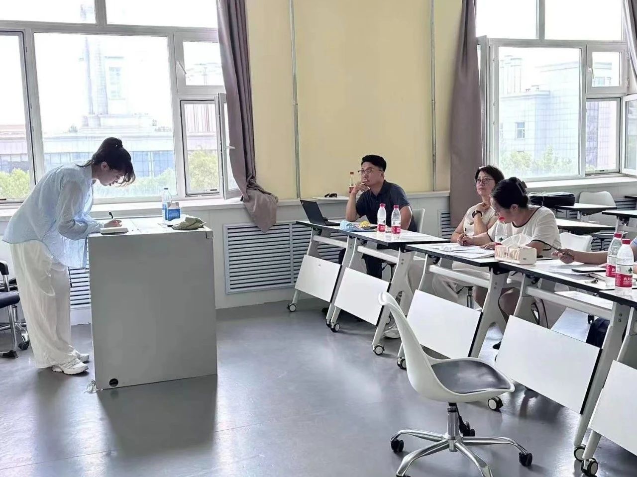 专家团队认真聆听并与授课教师进行深入交流,在教学目标设定、内容深度广度、案例选取、互动设计及教学方法优化等方面提供了细致且极具建设性的意见,现场研讨氛围热烈。