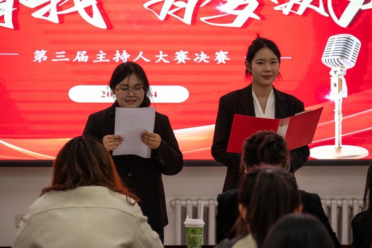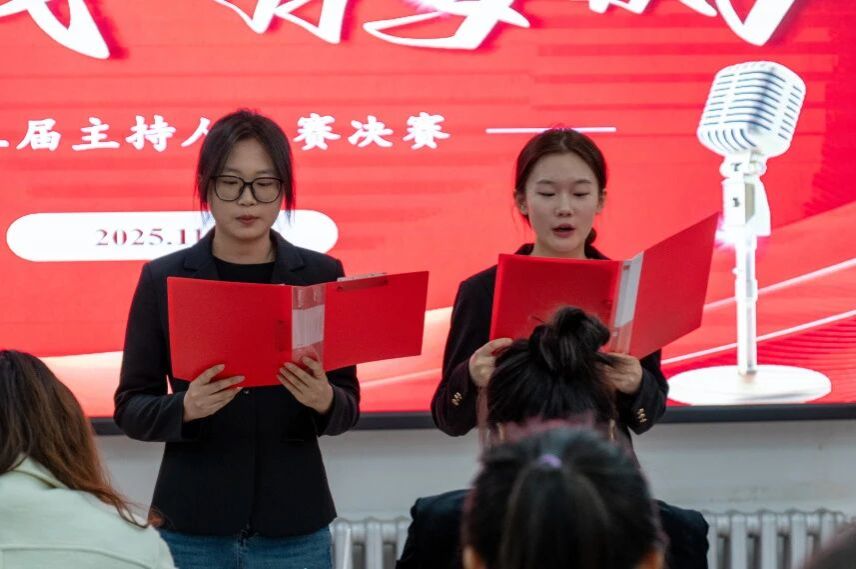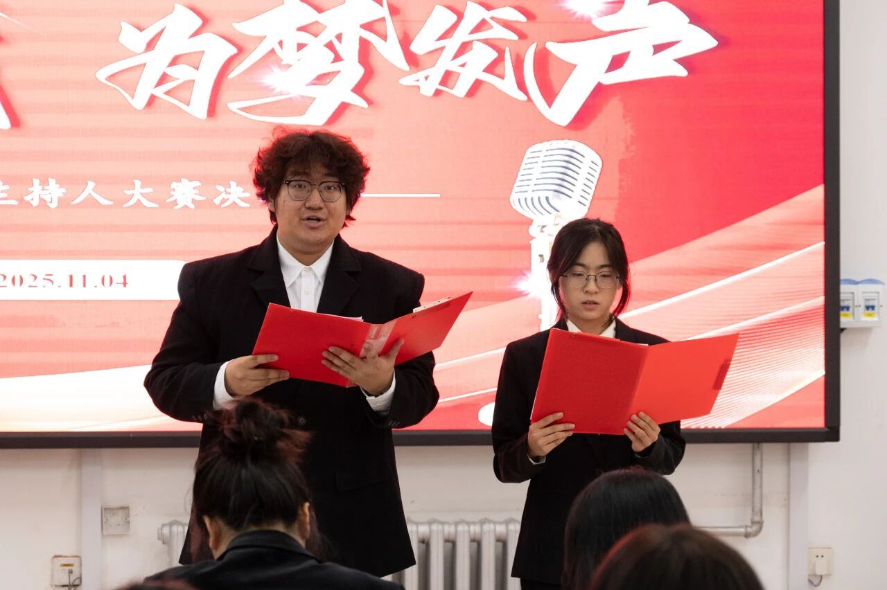 本届决赛赛制设计科学严谨,全面考察选手的专业功底与综合能力。比赛共分为两个环节:第一轮绕口令展示,考验选手的语言基本功,第二轮模拟主持,通过限时准备、即兴发挥的方式,全面检验选手的舞台表现力与临场应变能力。在决赛现场,选手们从容不迫、谈吐得体,充分展现了学院学子卓越的综合素养和昂扬的精神风貌。两个环节的激烈比拼,全面彰显了新时代青年学子的专业潜质与多元才华。