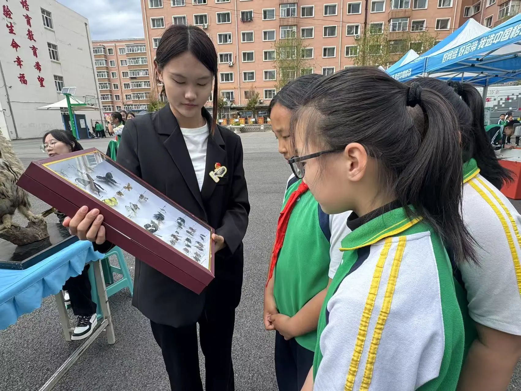 活动现场,学院师生团队采用“互动+体验”的模式,为幸福小学带来鸟类昆虫标本趣味讲解、活体东北林蛙及蝌蚪互动、“爱鸟周”主题精美周边分发等项目,巧妙地将课堂上的理论知识转化为生动的实践课堂。小学生们在交流中,对生物多样性这一概念有了更为深刻、透彻的认知,旨在培育他们树立爱护环境、珍视生态资源的环保意识。