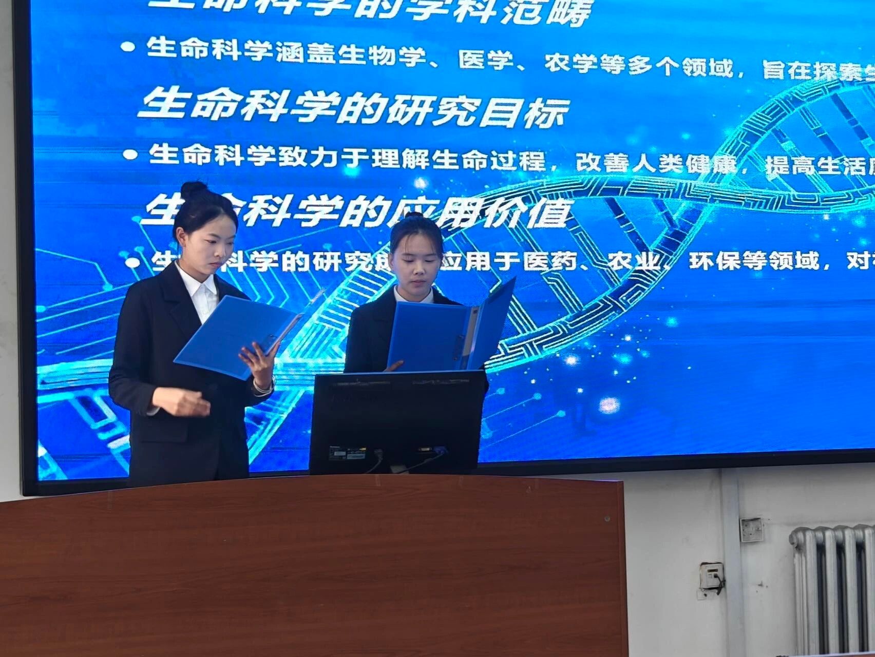 本次比赛分为初赛和决赛两个阶段。初赛阶段,参赛选手围绕生物科普知识进行普通话演讲。经各班级综合评审,共有23组优秀选手晋级决赛。决赛现场,选手通过独诵、双人朗诵、多人朗诵等表现形式,结合科学主题进行展示,整体表现流畅自然,展现了良好的语言表达能力。