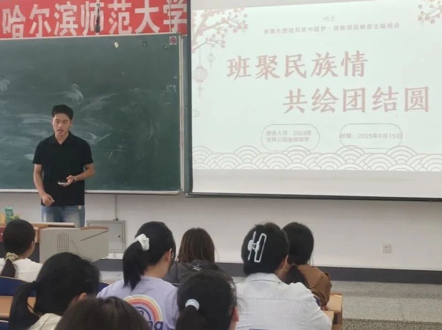 9月16日,2024级全体班级同步开展“班聚民族情,共绘团结圆”主题班会。班会上,主讲人结合鲜活案例,从历史传承与时代价值维度解读民族大团结的内涵。少数民族同学依次上台,分享本民族的服饰文化、传统节日与民俗故事,带领大家“云游”民族村寨。互动环节中,“民族知识竞答”“文化习俗配对”等趣味游戏点燃全场。本次活动帮助同学们在脑力比拼中深化认知,在欢笑中增进理解,巩固了班级凝聚力,加强了学生对民族一家亲的理解,让团结理念融入班级日常。