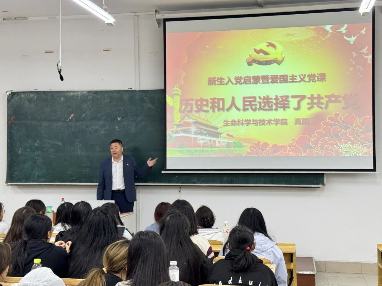 高阳以“历史与人民选择了共产党”为切入点,组织同学共同观看主题教育影片,细致讲解了申请入党条件、程序及关键时间节点。他鼓励新生要将对党的热忱转化为服务同学、团结集体的实际行动,努力成长为有理想、有担当、有作为的新时代青年。