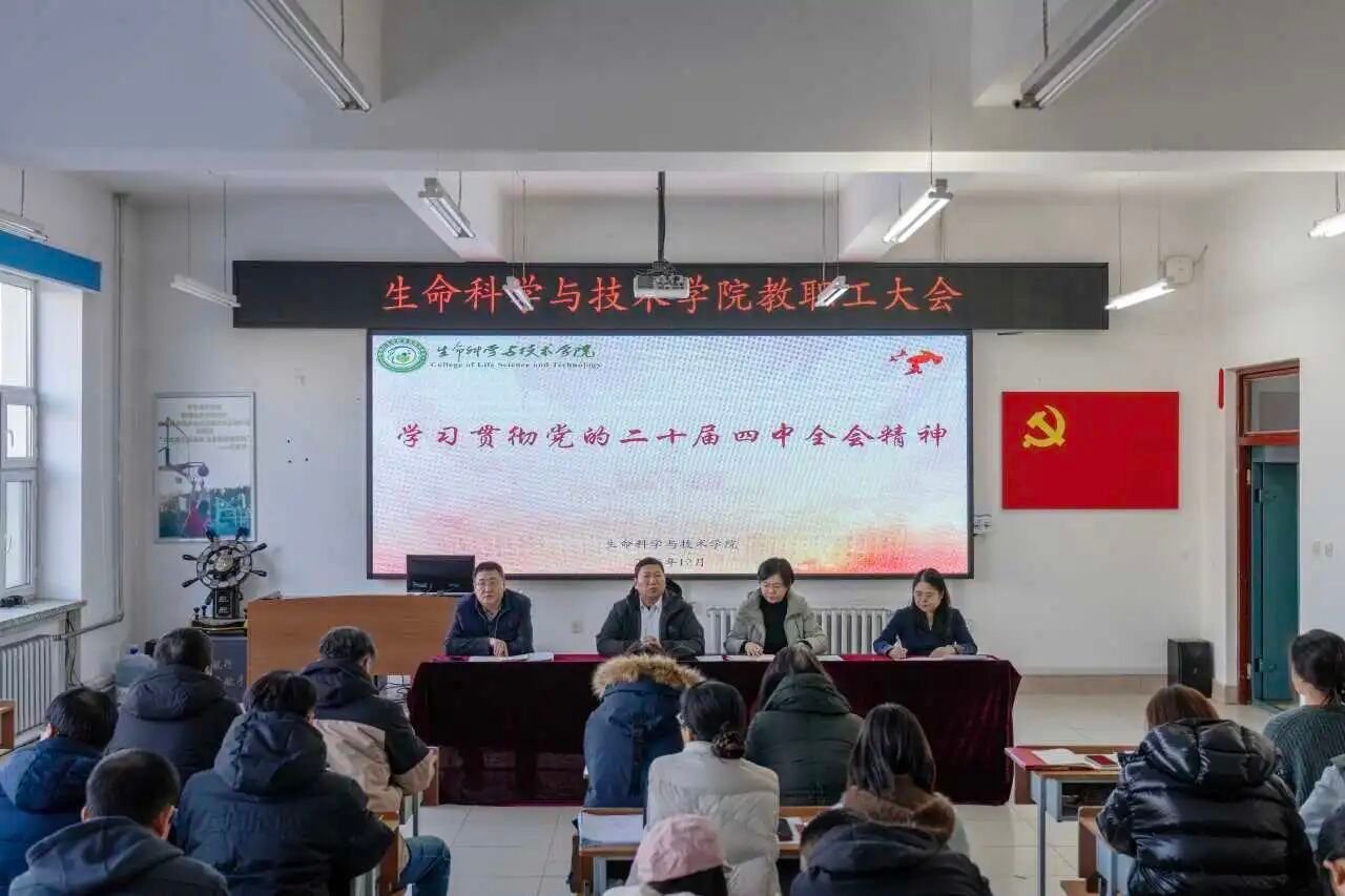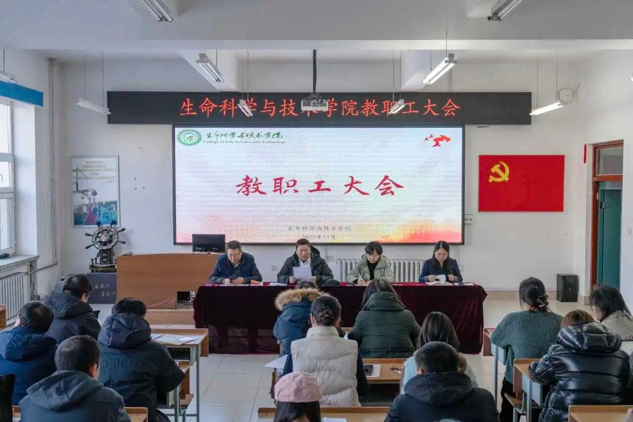 为统筹推进学院各项工作,明确近期重点任务,凝聚发展合力,12月3日下午,生命科学与技术学院于理工三号楼323室召开全院教职工大会。校党委常委、副校长、学院院长刘妍,学院党委书记张玉山,党委副书记高阳,副院长郭东林及全体教职工参加会议。会议由张玉山主持。