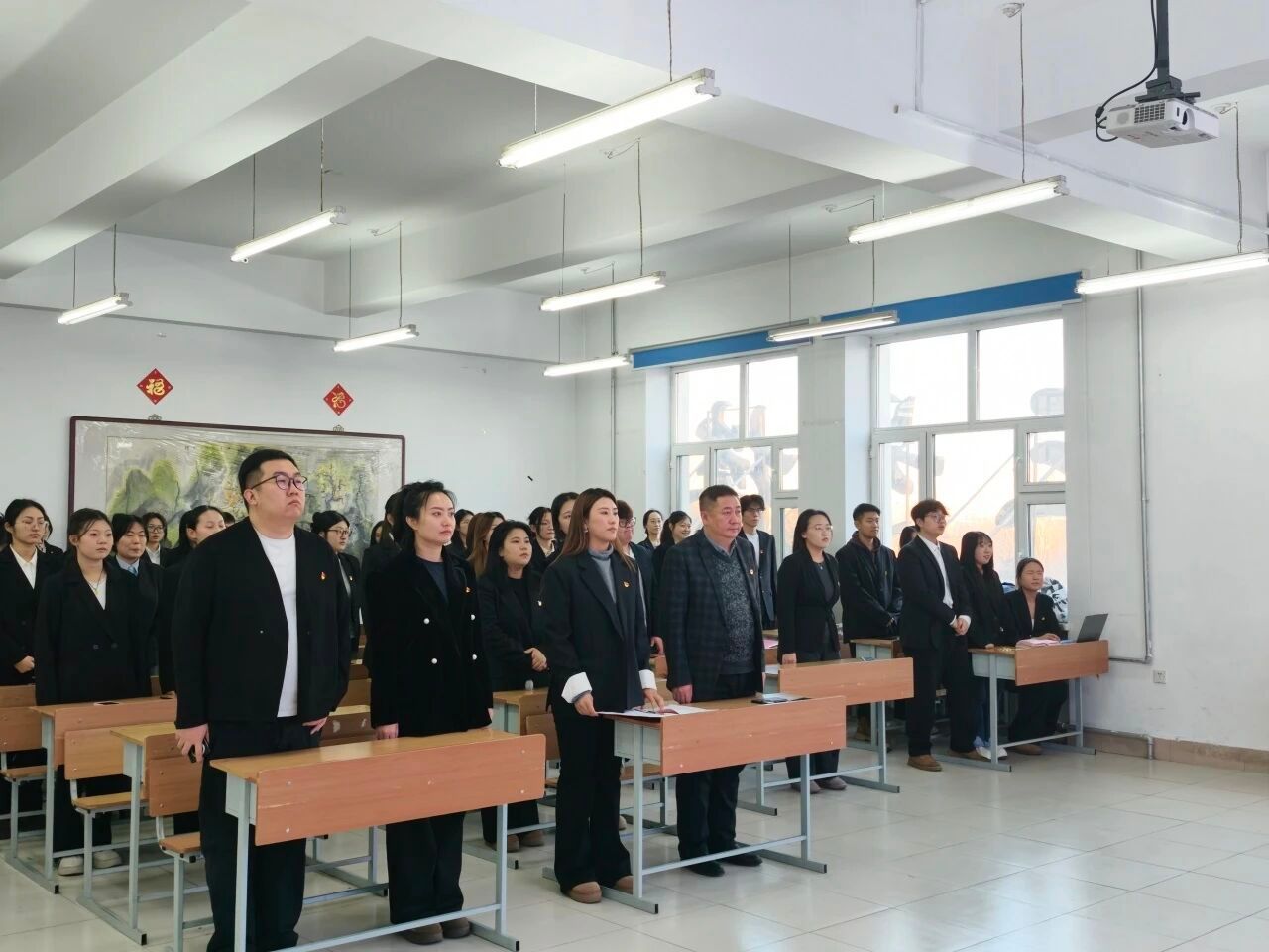 正值期末考试周,新党员代表赫伊鸣带领全体新党员宣读诚信考试承诺书,承诺严守考场纪律、弘扬诚信学风。