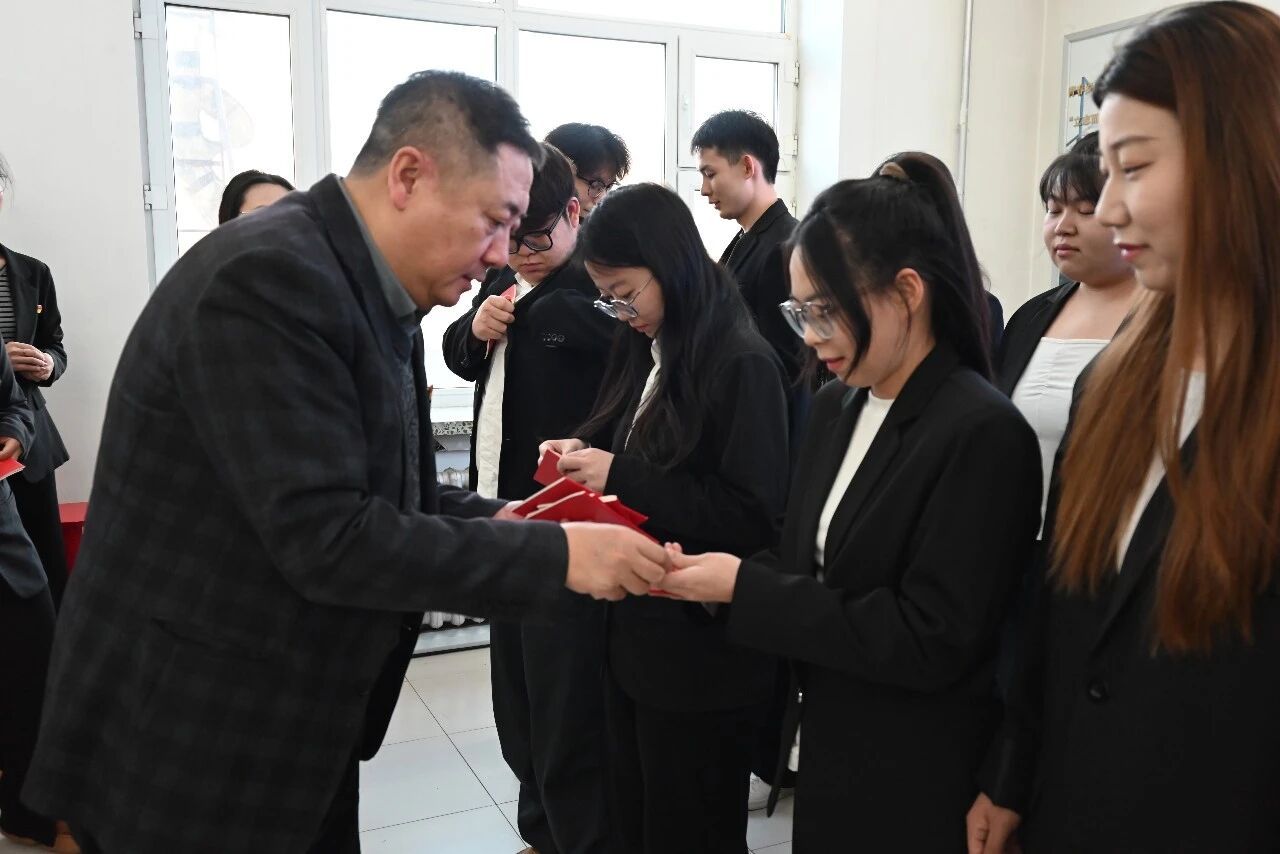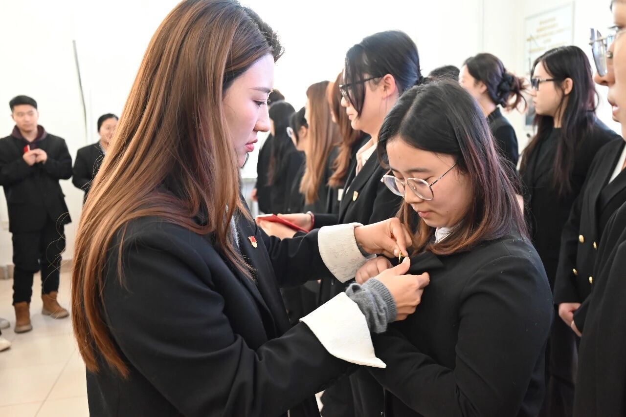 各学生党支部书记为2025年下半年新接收预备党员佩戴党员徽章、颁发党章。